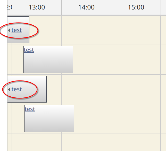 In the Scheduler, the Events get a left arrow icon when they reach the left end and they continue in the hidden area. Also, a new .scheduler_default_event_float element is created for them: